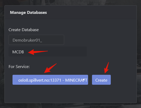 1) Hver spillserver fra Spillvert.no inkluderer én gratis database (MariaDB, tidligere MYSQL)