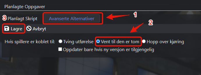 4) Valgfritt: Om du ønsker at serveren ikke skal oppdatere (og dermed restarte) når det er spillere tilkoblet, kan du konfigurere jobben til å vente til serveren er tom før den oppdaterer seg.